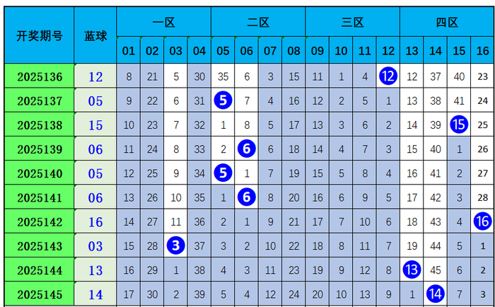 红二区(12-22):上期开出3个红球,最近10期该区开出19个红球,出号较冷,本期推荐奖号13。